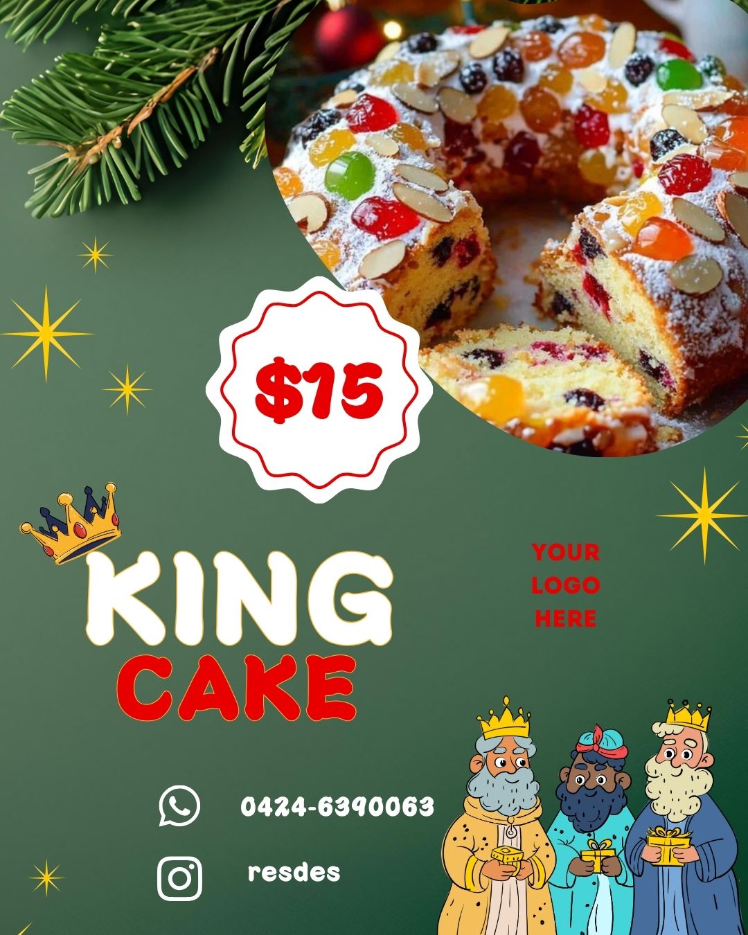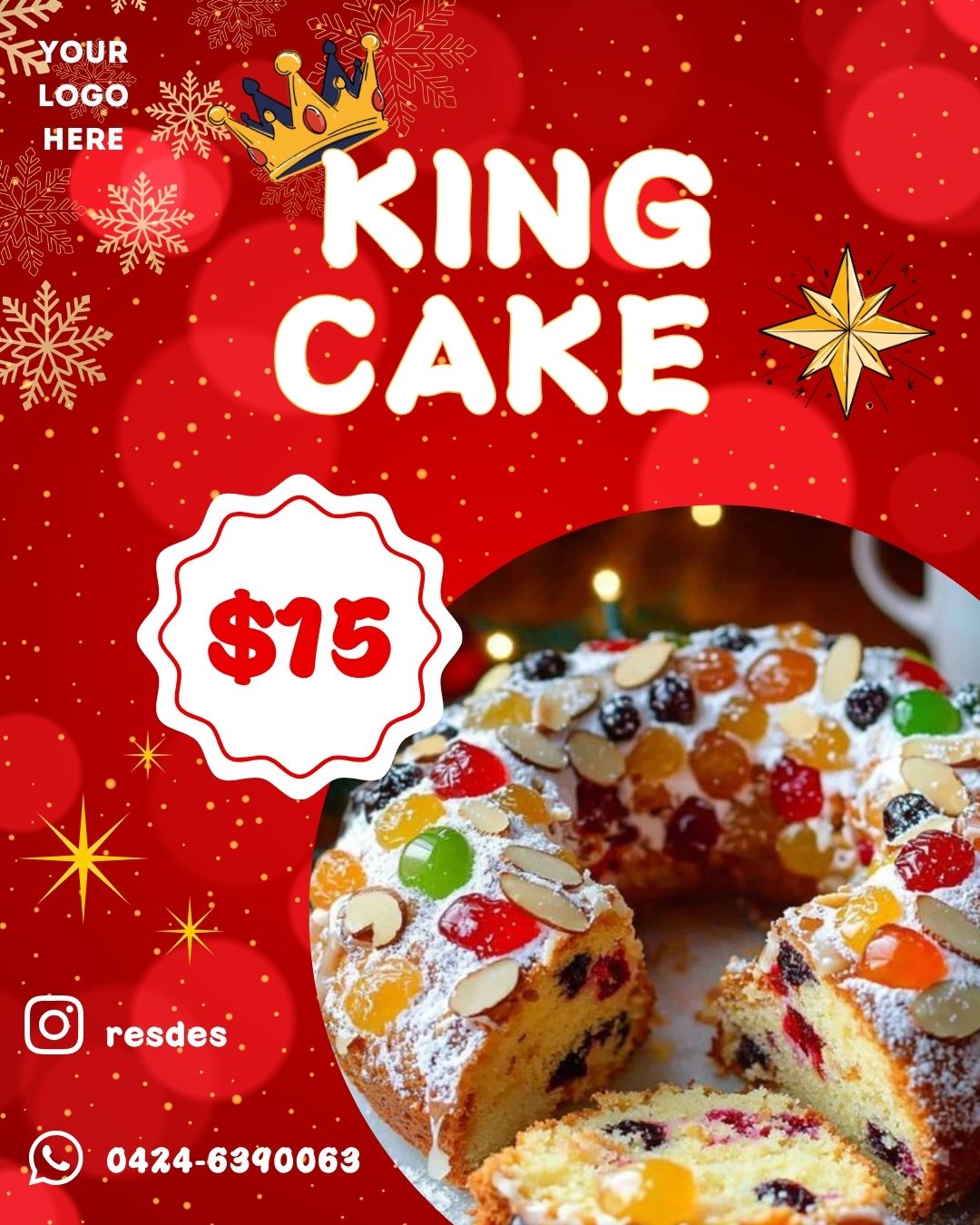 High-Quality King Cake Flyer Editable in Canva for Your Bakery